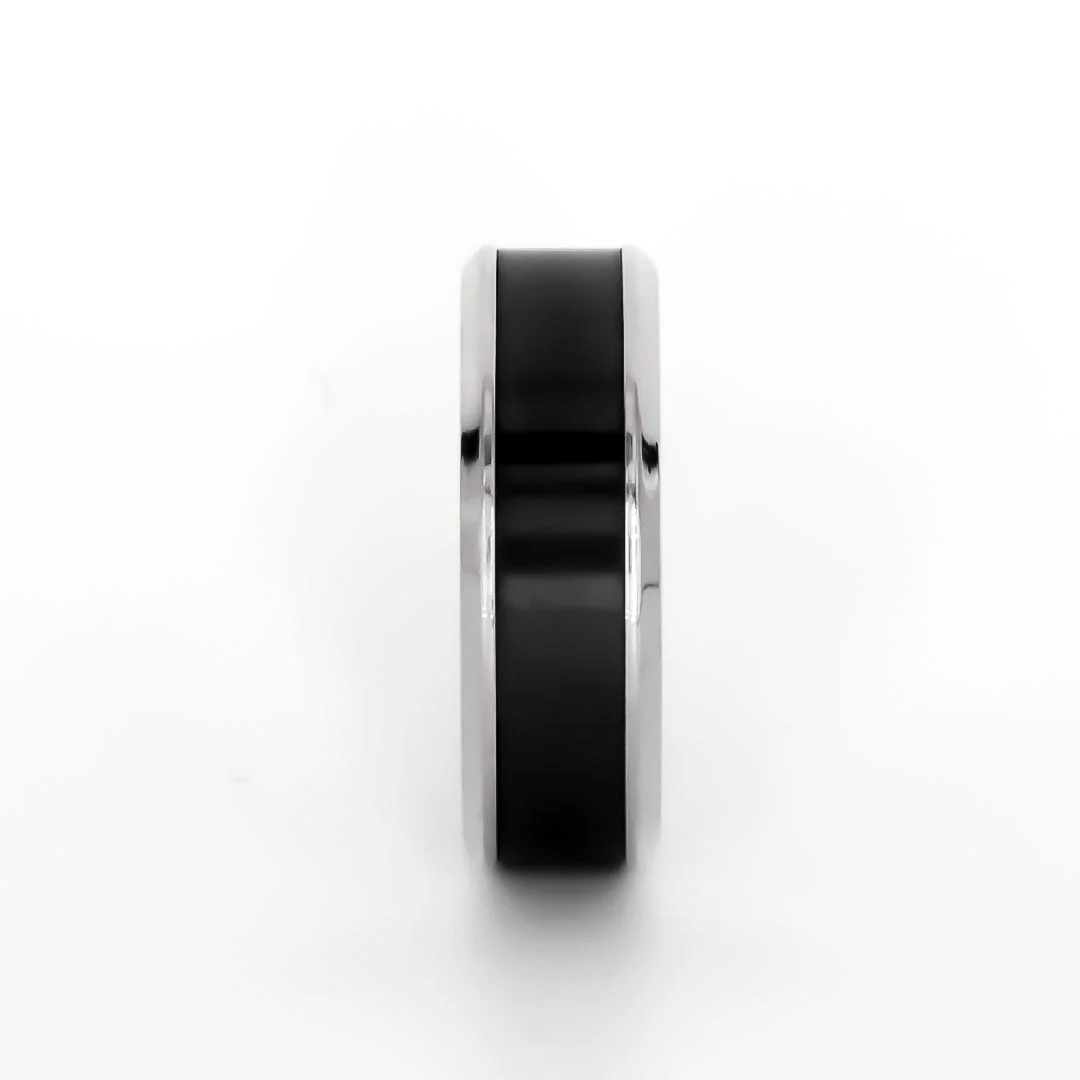 Black Diamond - Men’s Ring 8mm - 14K White Gold w/ Black Diamond Inlay - IMPERIUM - Elysium Black Diamond